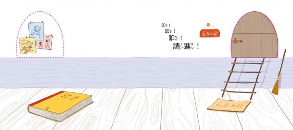 本書內頁有三處開洞,呈現了小老鼠蘇西的家門口。洞口忽大忽小的視覺變化,相當有趣。橫向扁長式的開本,也呈現了動作的連續性與時間的流動性。