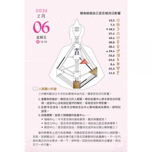 不只是日曆,更是每日的人類圖氣象報告,還有不定期的小科普與小練習。