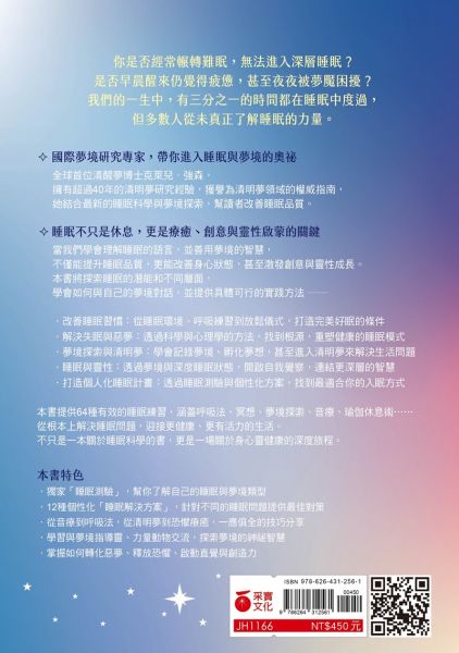 「這部著作猶如一座充滿深奧練習的寶庫,不僅能助你獲得最佳睡眠,還能活出最精采的人生。」——金伯莉.馬斯卡羅博士(Kimberly Mascaro, PhD),《夢是良藥》(Dream Medicine)作者