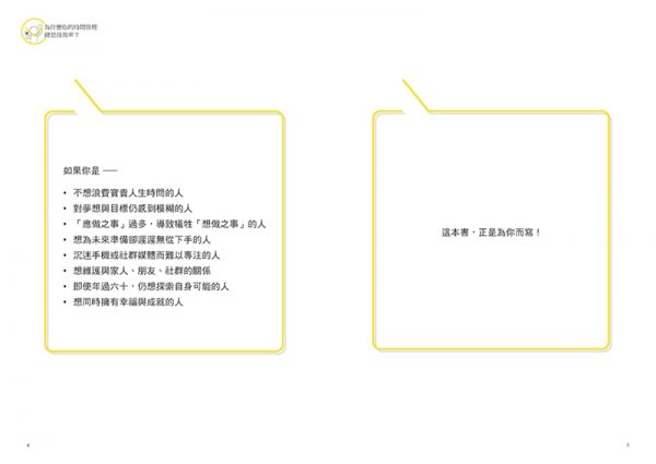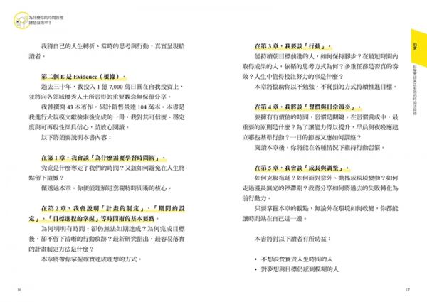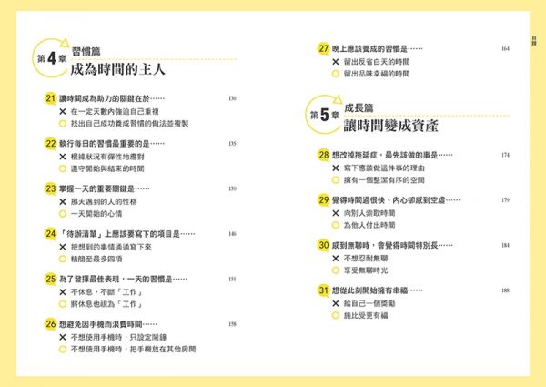 本書從「時間、計畫、行動、習慣與成長」五大面向,