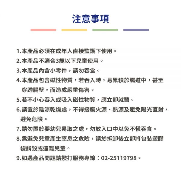 1.           磁力片為塑膠製品,生產及包裝過程皆由人工撿片,運送過程中仍不可避免會有刮痕和相關瑕疵,判斷會是以「明顯影響商品組裝功能」來定義是否為瑕疵。