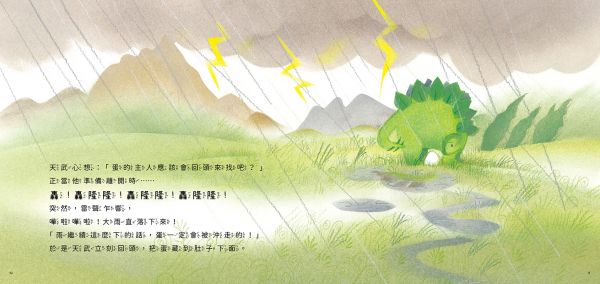 日本人氣繪本作家入山智繼《小雞球球》後,再度推出全新溫暖力作,陪伴孩子一起展開穿越時空的情緒之旅。本書的主角──劍龍「天武」從小就是個孤兒,雖然有孤單寂寞的感覺,但是他有個一個溫暖的心,細心守護被遺落的蛋。3~6歲是孩子情緒成長的重要時期,也最需要大人的理解與陪伴。孩子孤單的經歷可以轉化為一種經驗,催生同理心的萌芽,當遇到別人孤單或弱者需要幫助的時候,他們能從自身經驗出發去理解他人。