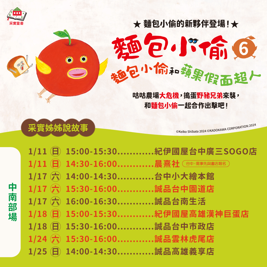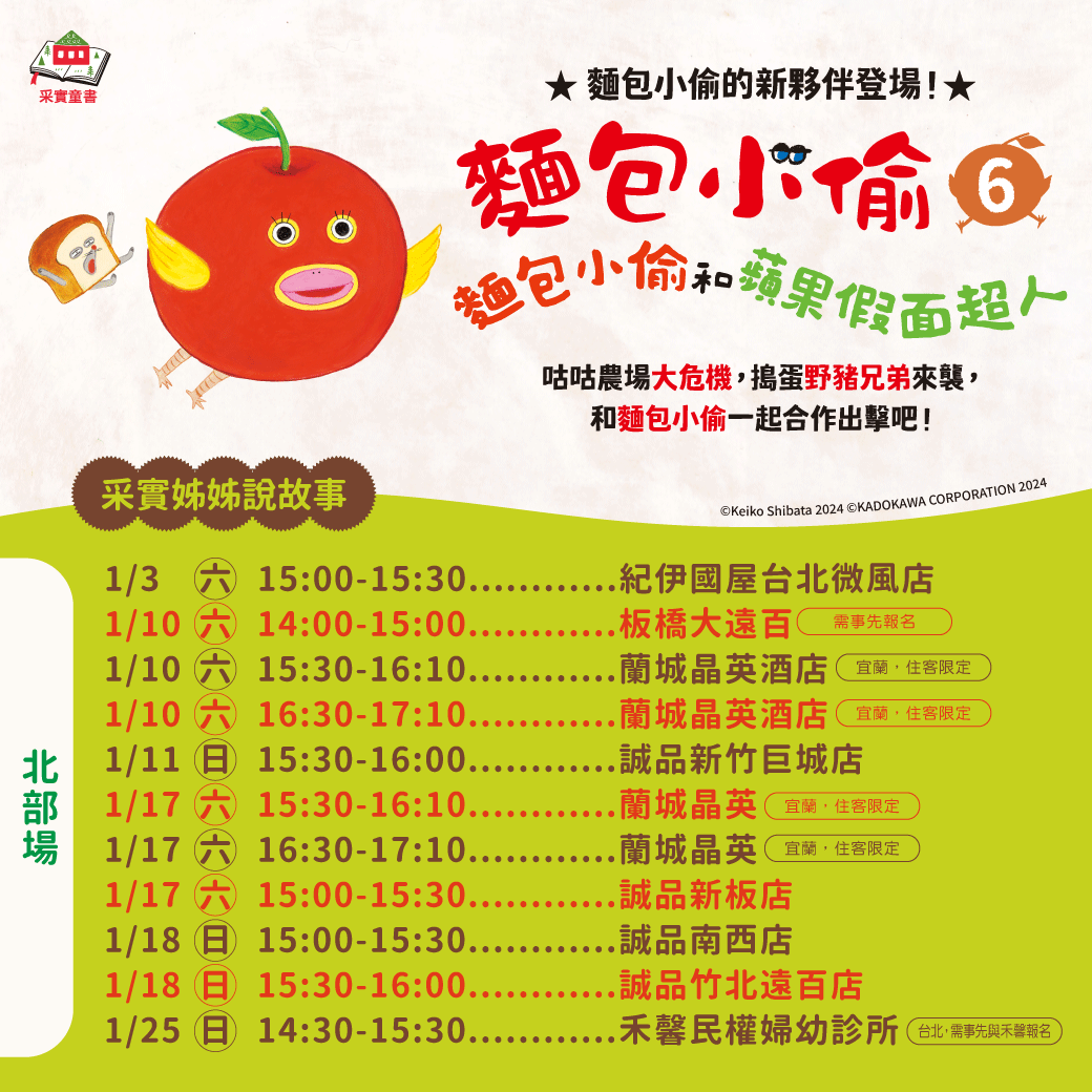 首頁 > 最新消息 > 2026.2月采實姐姐說故事《 麵包小偷6:麵包小偷和蘋果假面超人》