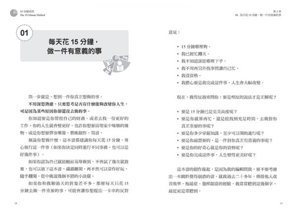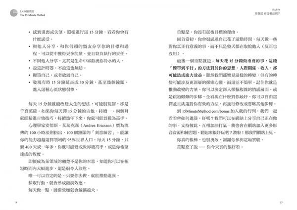 本書還有更多活用15分鐘法則的真實故事與實用方法,