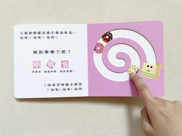 甜甜圈從袋子裡滾呀滾!咕咚!掉到哪裡去了呢?