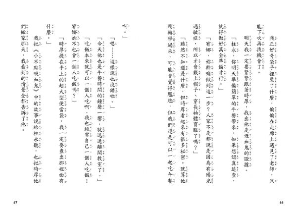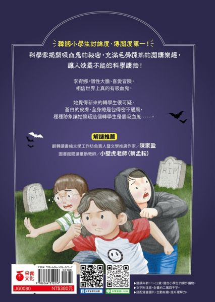 「如果孩子愛鬼故事、又愛辦案追線索,那這本書絕對會讓他一邊偷笑、一邊把『害怕』變成『勇敢』。跟著大膽的宥娜從校園的轉學生疑雲出發,抽絲剝繭到發現誤會一場,順便練習:別急著貼標籤,先把證據找齊。接著一個意外跌進吸血鬼村,躲避追擊、破解規則,緊張得像追劇,卻仍保留童書該有的溫柔與幽默。最打動我的是故事中理性與同理心可以同時兼具發光;誠摯推薦給喜歡奇幻與推理的孩子,也很適合親子共讀後,一起聊聊偏見、合作與自救,冒險不是逞勇,而是帶著好奇與方法,去看見更多的不同。」──翻轉讀書繪文學工作坊負責人暨文學推廣作家 陳家盈