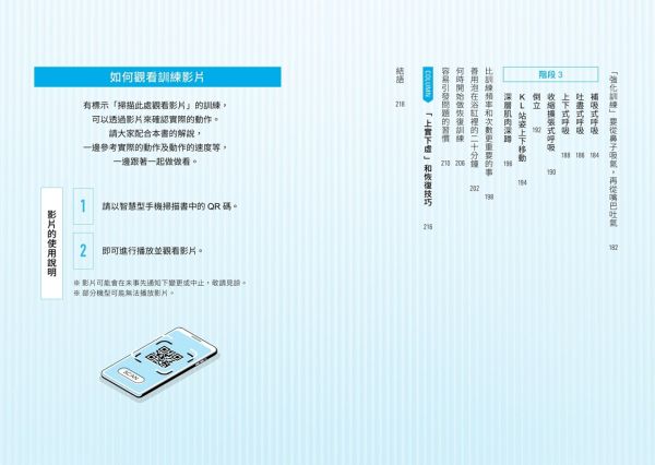1、動作圖解:彩色頁面、真人示範,照著步驟更易練習。